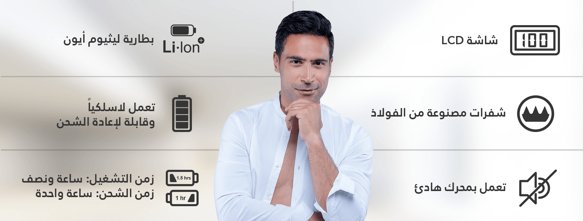 وتعمل بكفاءة فائقة لتناسب جميع الاحتياجات والأشكال في حلاقة الشارب واللحية، أو تحديدهما، والتحكم في طولهما.