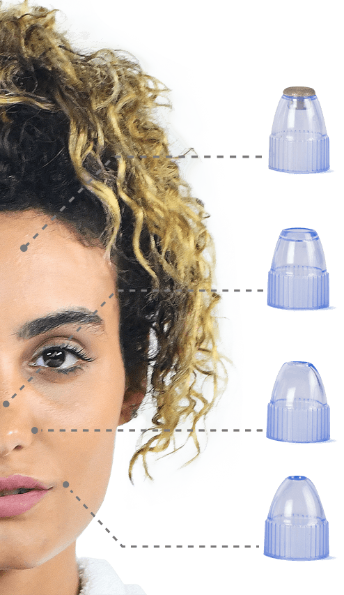 يمكنك ضبط مستوى شفط الجهاز حسب نوع بشرتك وكمية الرؤوس السوداء بها وأيضاً النتيجة التي تريدينها. كما أنه يوفر لكِ الاختيار بين 4 أشكال مختلفة من الرؤوس لكل منهم وظيفته الخاصة التي تناسب جميع أنواع البشرة بفعالية،